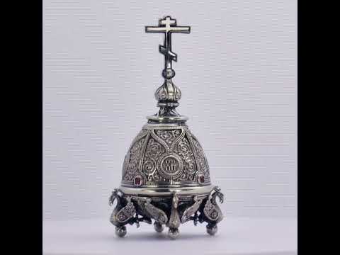 Сувенирный колокольчик «Пасхальный», выполненный из бронзы и украшенный фианитами, станет прекрасным подарком к Светлому Христову Воскресению, самому важному христианскому празднику. Изделие декорировано изящными ажурными узорами и имеет удобную подставку в виде четырёх сказочных птиц, позволяющую использовать колокольчик как миниатюрную шкатулку.